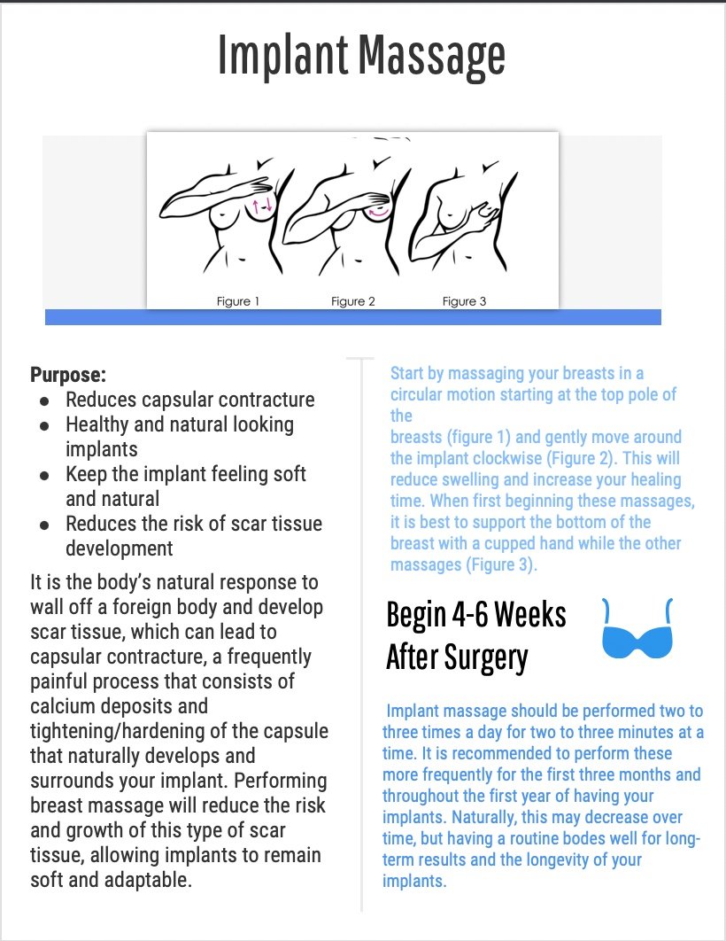 Implant Massage Instructions Implant Massage for a Mastectomy or Reconstruction Implants and BREAST AUGMENTATIONS